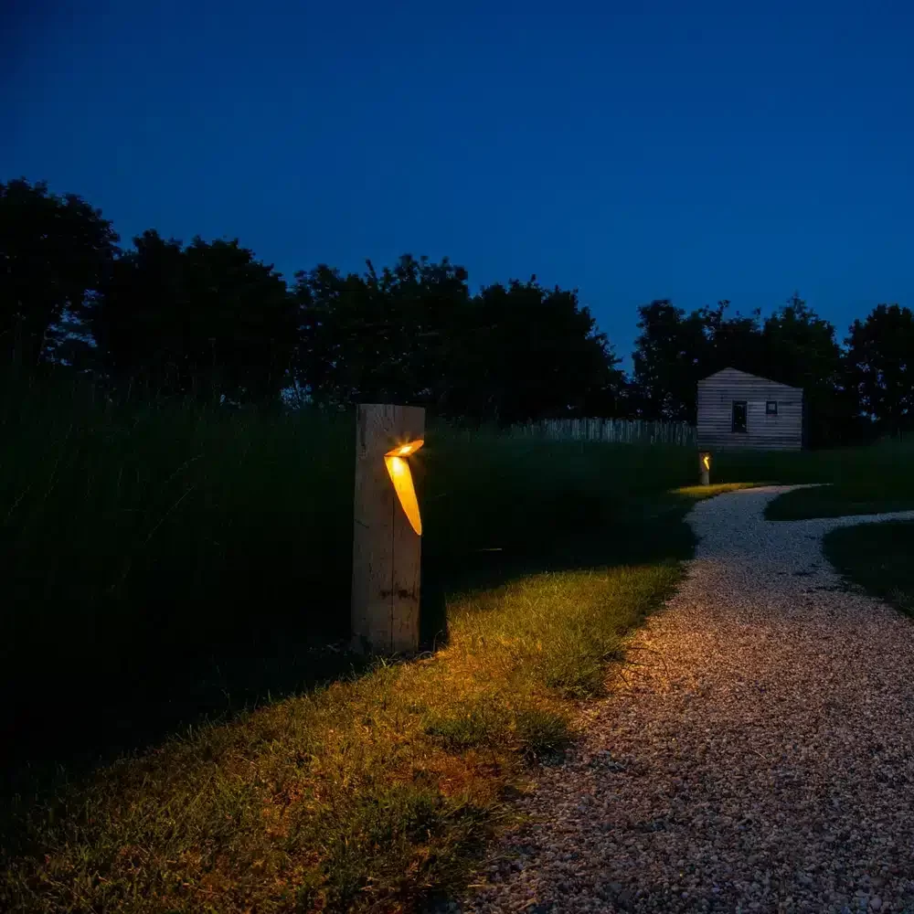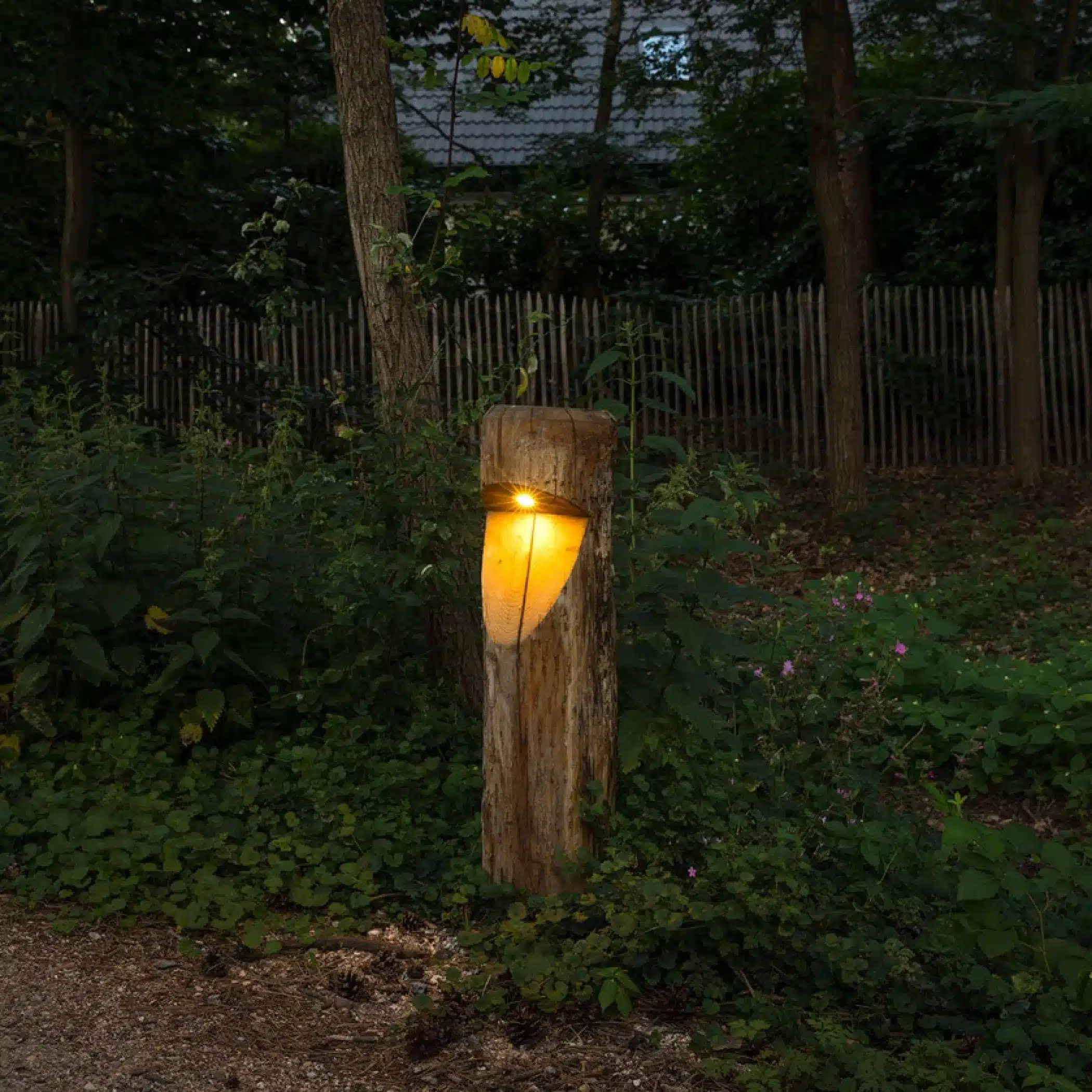 Deze buitenlamp Bosco is gemaakt van kastanjehout. Dit maakt deze fraaie buitenlamp uitermate geschikt voor natuurlijke, bosrijke omgevingen. De hoogte is 65 cm. De breedte 20 cm. De led lichtbron is ingebouwd. De lichtsterkte is 2,4 watt. De beschikbare lichtkleuren zijn: 2.200K (geel/oranje), 2.700K (extra warm wit), 4.000K (koel wit) en amber (oranje). De lamp is te leveren in de hoogte van 65 cm of in de hoogte van 65 cm met een grondstuk van 60 cm. Deze extra 60 cm gaan dan in de grond voor een stevige bevestiging in de aarde. De driver is ingebouwd in het armatuur, de aansluitspanning is dus gewoon 230 volt. De lamp is goed waterdicht: IP54. Evt kan de lamp uitgerust worden met een slim Adark dimsysteem met bewegingsmelder.